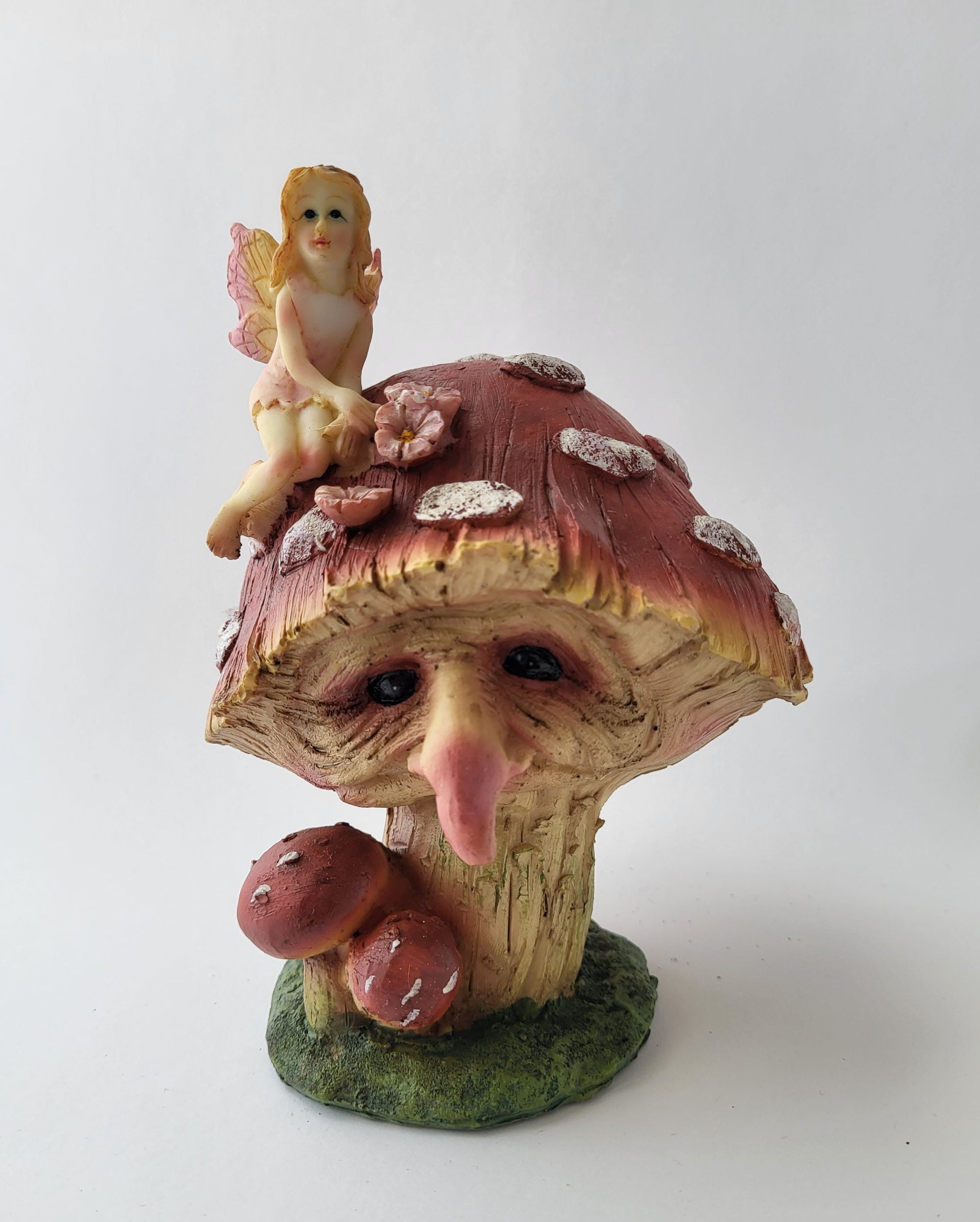 Ängel på svamp, svamp i form av ett ansikte. Ängeln är klädd i en rosa klänning, 16 cm, polyresin