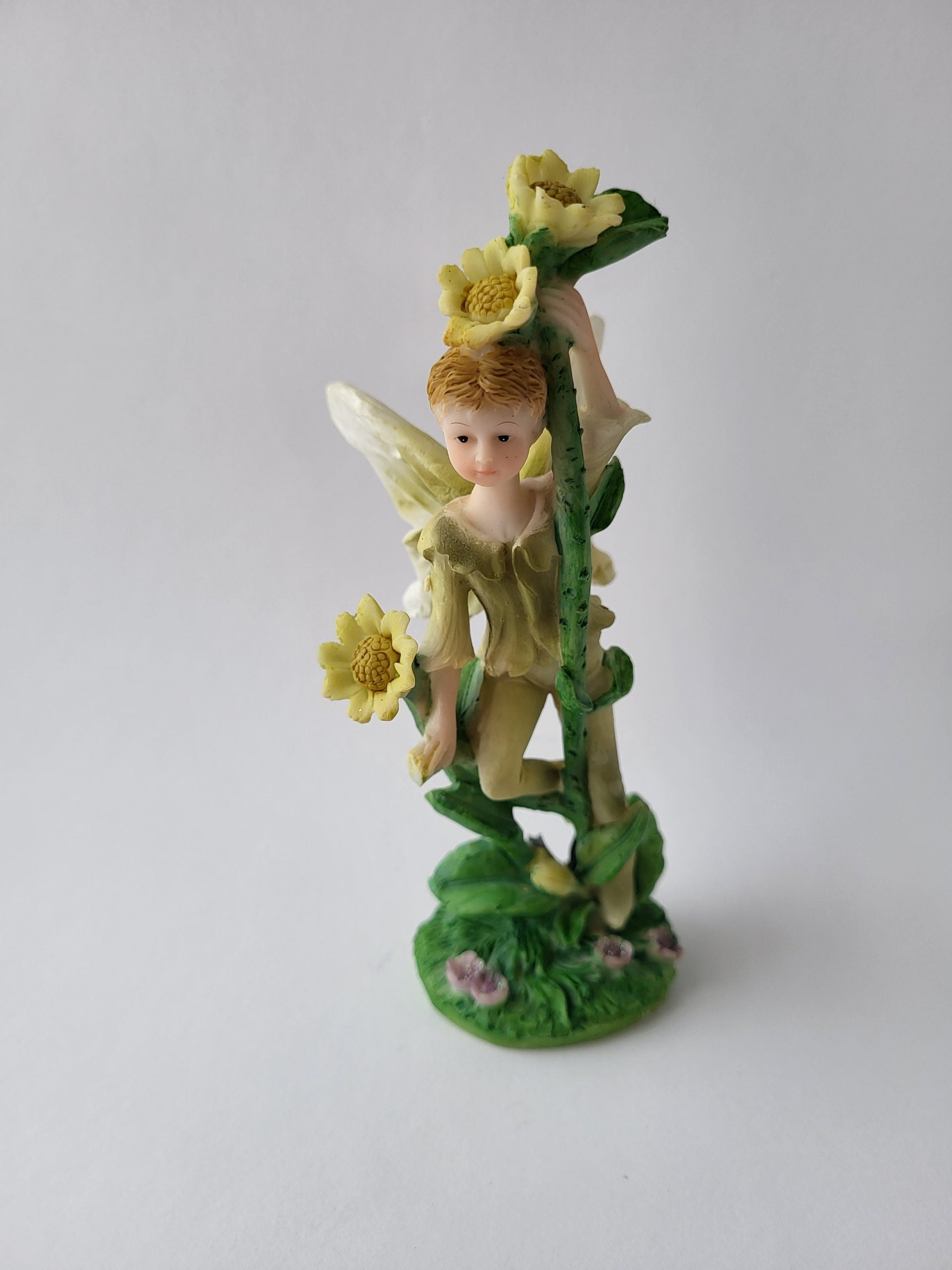 Älvpojken älskar vackra blommor och håller dem hårt,, polyresin, ca 14 cm