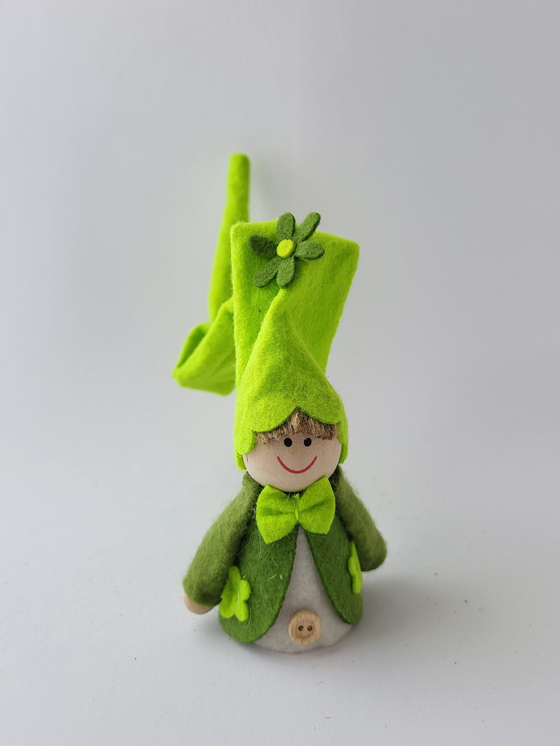 Tomte, pojke, grön, 12 – 30 cm, med blommor och rosett