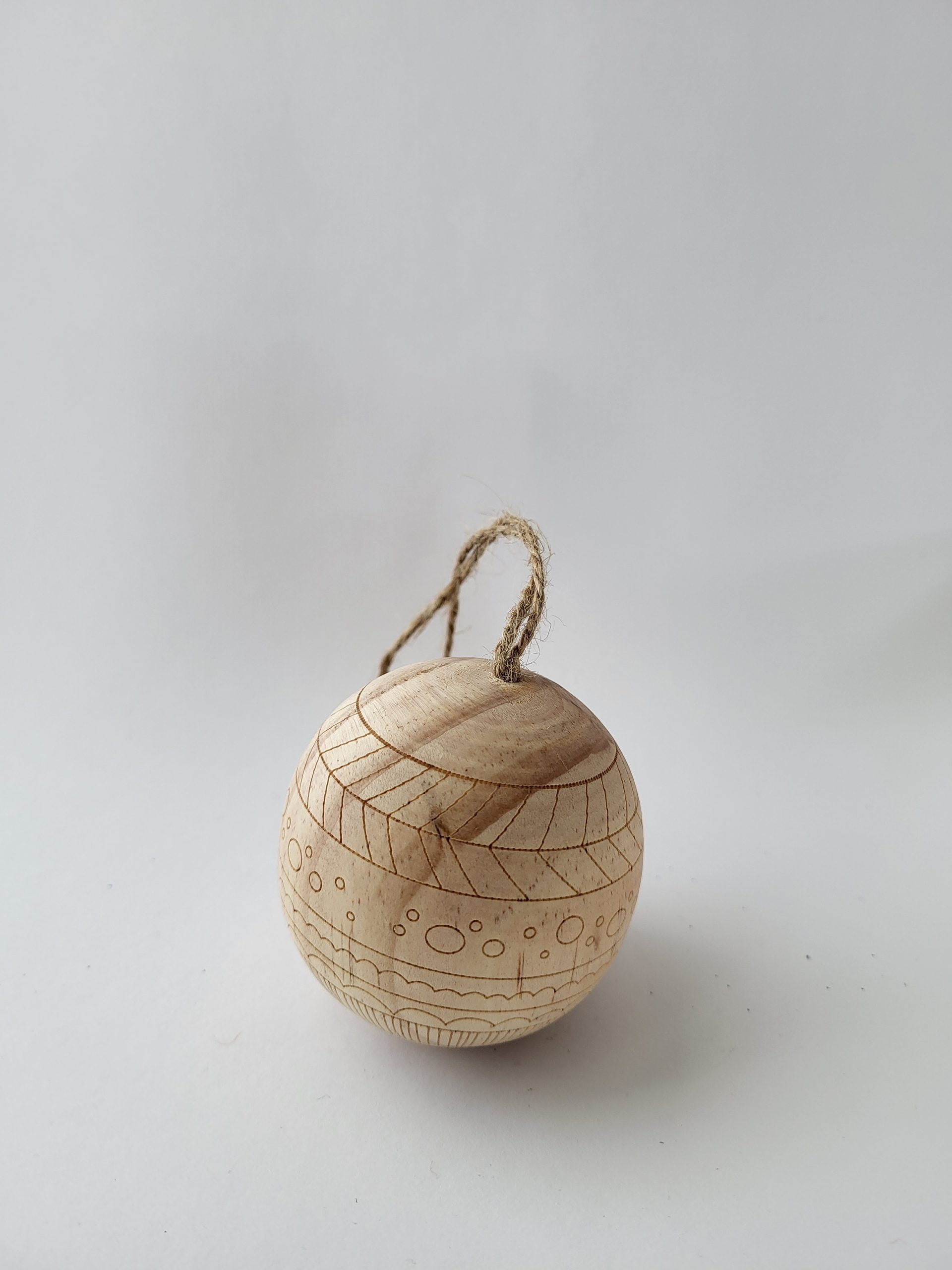 Träboll med dekoration, att hänga i huset eller julgranen, 6 cm
